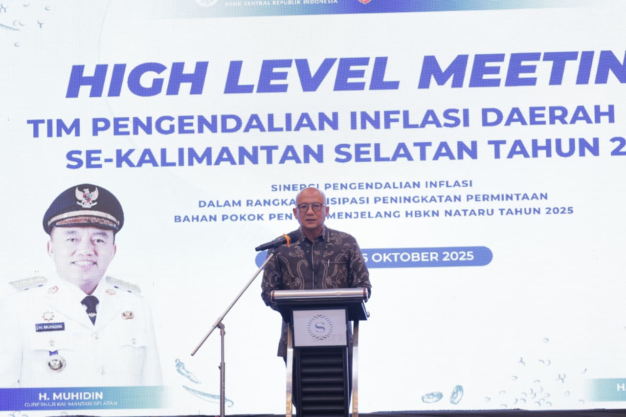 Surabaya - Gubernur Kalimantan Selatan H Muhidin hadiri dan membuka High Level Meeting Tim Pengendalian Inflasi Daerah (HLM TPID) Provinsi Kalimantan Selatan tahun 2025, pada Rabu (15/10) pagi.