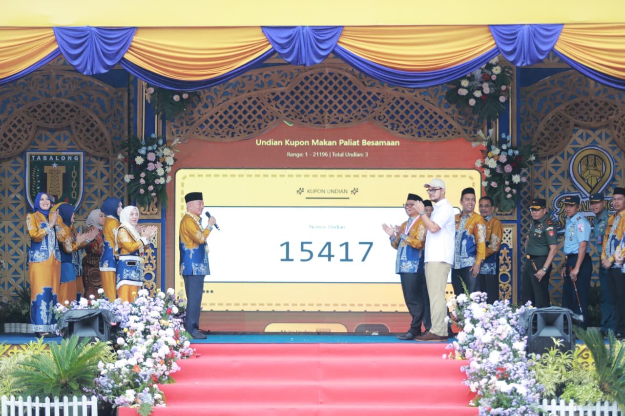 Kemudian, penyerahan piagam Rekor MURI penyajian hidangan sebanyak 19.497 porsi Paliat dan pengundian hadiah utama berupa paket umrah dan dua unit sepeda motor, salah satunya partisipasi Gubernur H Muhidin.