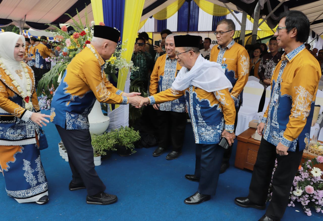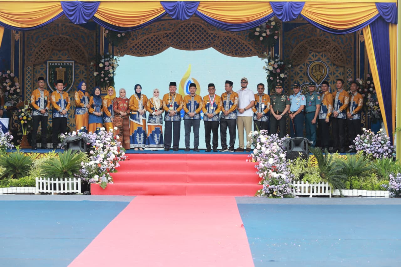 Tanjung - Gubernur Kalsel H. Muhidin beserta istri Hj. Fathul Jannah dan Wakil Gubernur Hasnuryadi Sulaiman beserta istri drh. Ellyana Trisya menghadiri puncak Hari Jadi (Harjad) Kabupaten Tabalong ke-60 Tahun 2025 di Halaman Kantor Bupati Tabalong pada Senin (8/12/2026).