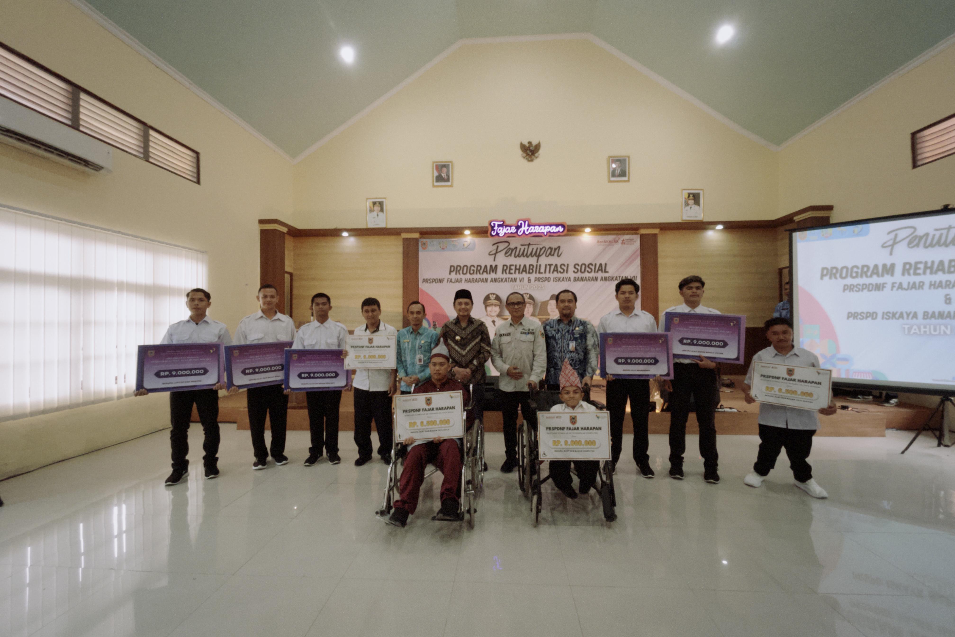 Acara penutupan program rehabilitasi sosial dihadiri Kepala Dinas Sosial kabupaten/kota se-Kalsel, Kepala PRSPDNF “Fajar Harapan”, Jumri, S.Ag., M.I.Kom dan Kepala PRSPD “Iskaya Banaran”, para kepala UPTD di lingkungan Dinas Sosial Provinsi Kalsel, serta perwakilan dari SLB Negeri 3 Martapura.