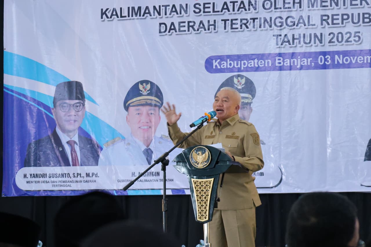 Banjar — Di tengah semangat kebersamaan ribuan perangkat desa yang memadati Gedung Serbaguna Desa Indrasari, Gubernur Kalimantan Selatan H. Muhidin menyampaikan apresiasi tulus kepada masyarakat yang terus berjuang menjaga desanya dari jerat narkoba.