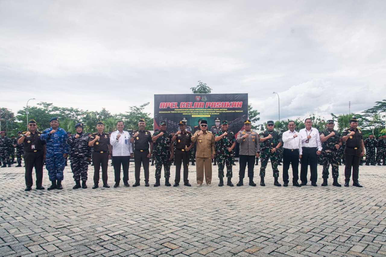Apel gelar pasukan tersebut dipimpin langsung oleh Pangdam XXII/Tambun Bungai, Mayjen TNI Zainul Ariffin, bersama Kepala Kejaksaan Tinggi Kalsel, Tiyas Widarto, serta Kepala Kejaksaan Tinggi Kalteng yang diwakili oleh Cakra Nur Budi Hartono.