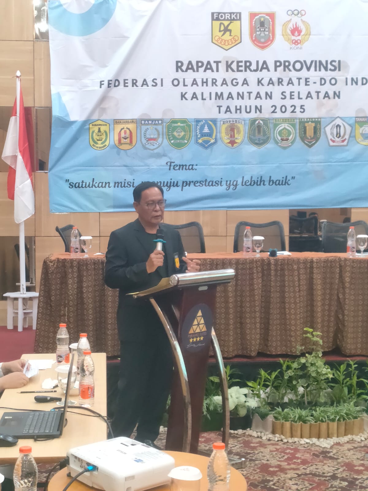 Banjarmasin—Federasi Olahraga Karate-Do Indonesia (FORKI) Provinsi Kalimantan Selatan sukses menyelenggarakan Rapat Kerja Provinsi (RAKERPROV) Tahun 2025 yang berlangsung di Pyramid Suites Hotel, Banjarmasin, pada Selasa (14/10/2025).