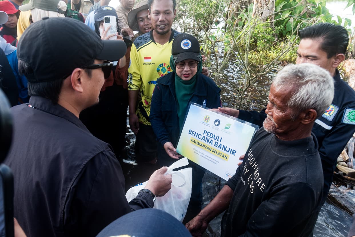 Pada kesempatan yang sama, salah seorang warga lanjut usia, Mbah Juli (70 tahun), turut menyampaikan rasa haru dan terima kasihnya kepada Pemerintah Provinsi Kalimantan Selatan yang telah hadir dan memberikan perhatian langsung kepada masyarakat terdampak banjir.